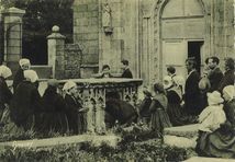 - Pardon de Minihy-Tréguier - Dévotions au Tombeau de Saint-Yves. Les Pélerins passent sous la voûte et baisent la terre par humilité